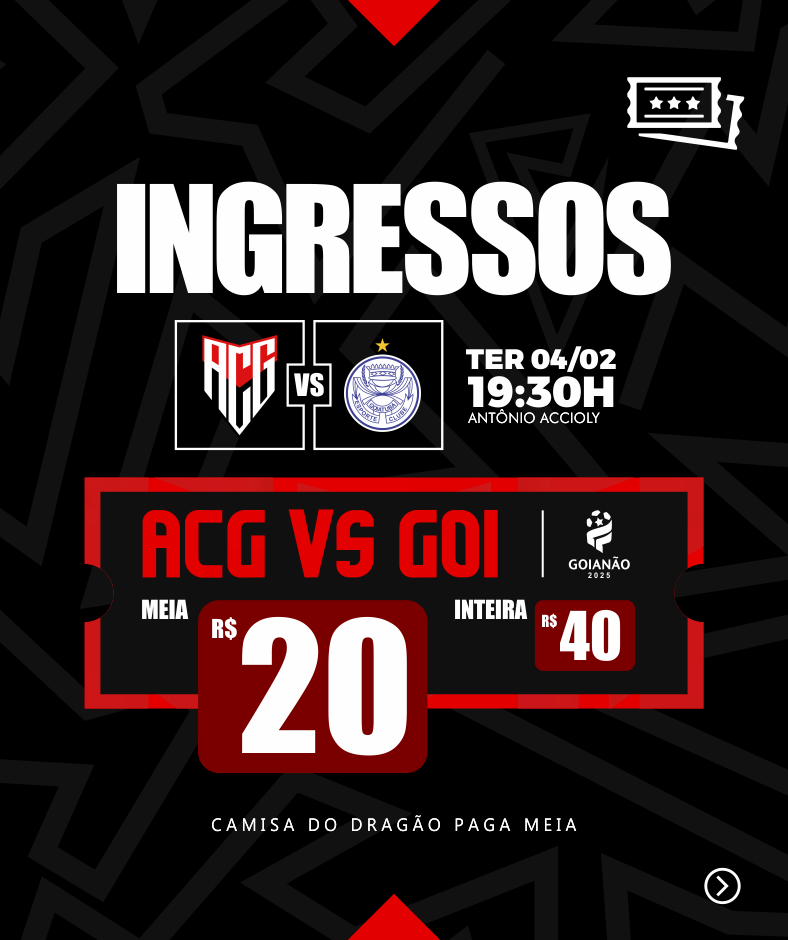 Promoção com a CAMISA do Atlético Goianiense e Goiatuba - As meias entradas serão de acordo com o benefício da lei, limitados 40% dos ingressos comercializados, conforme prevê a lei 12.933/2012.