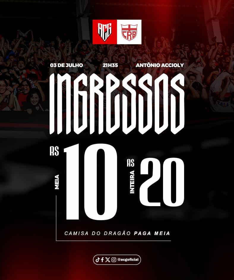 As vendas acontecem de forma online, através do site IngressoS.A, a partir de segunda-feira (30). E nas bilheterias do Estádio Antônio Accioly na quinta-feira (03). Os bilhetes custam 20 reais a inteira e apenas 10 reais a meia-entrada, válidas para quem for ao jogo com a camisa do Atlético e CRB.